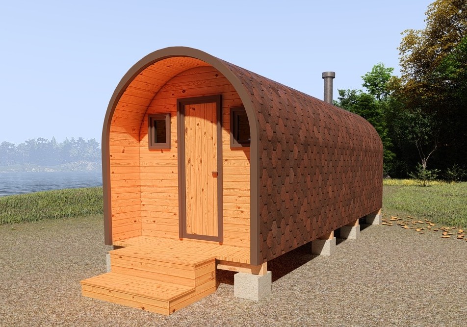 Баня-бочка «Орео» с боковым входом и панорамным окном Стильная и современная баня-бочка с боковым входом может быть выполнена длиною от 4 метров, что-бы было два отделения (парилка и комната отдыха). Полок может быть, как с двух сторон, так и угловой, в стандарте одноуровневый. Печь в данной модели расположена сбоку с топкой наружу, либо внутрь парилки. Печь можно укомплектовать баком для воды, а саму баню сделать длиною до 6 метров, комфортно разместив в ней дополнительно помывочную. В эту модель включено два закаленных стеклопакета: круглое и полукруг, которые мы можем разместить на ваше усмотрение в парилке и комнате отдыха. Обращаем Ваше внимание, по умолчанию в данной модели отсутствует бак для воды, вместо него идёт утеплённая термо-труба, которую можно заменить на бак по желанию.