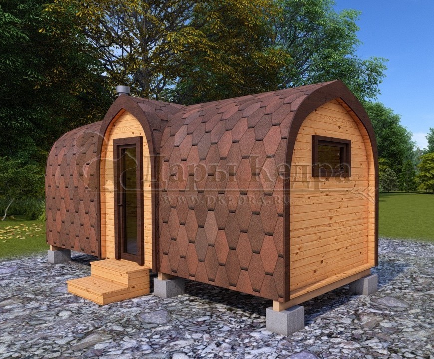 Баня-бочка представляет собой конструкцию в виде бочонка без углов. Такая форма считается оптимальной для равномерного распределения пара по всей внутренней поверхности парной. Таким образом, пар не скапливается в одном месте, а циркулирует по всему объему. Соответственно, круглая (квадратная, овальная) баня экономичная: топится быстро, требует дров мало.