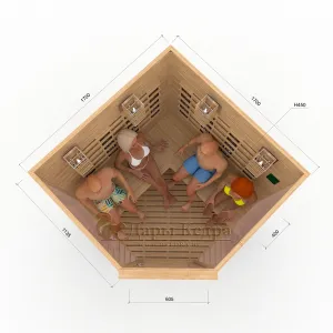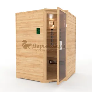 Это специально оборудованная кедровая кабина для прогрева тела человека сухим теплом. Воздух в таких парных не нагревается. Инфракрасные лучи воздействуют на тело, равномерно прогревая мышцы, суставы и органы. Керамические излучатели похожи на лампы, имеют высокую температуру нагрева, поэтому защищены противоожоговыми решетками. Тело человека в таких саунах нагревается интенсивнее. Работает кабина за счет электричества. Установка сауны в угол, позволяет рационально использовать пространство помещения. Подходит как для домашнего использования, так и для коммерции.