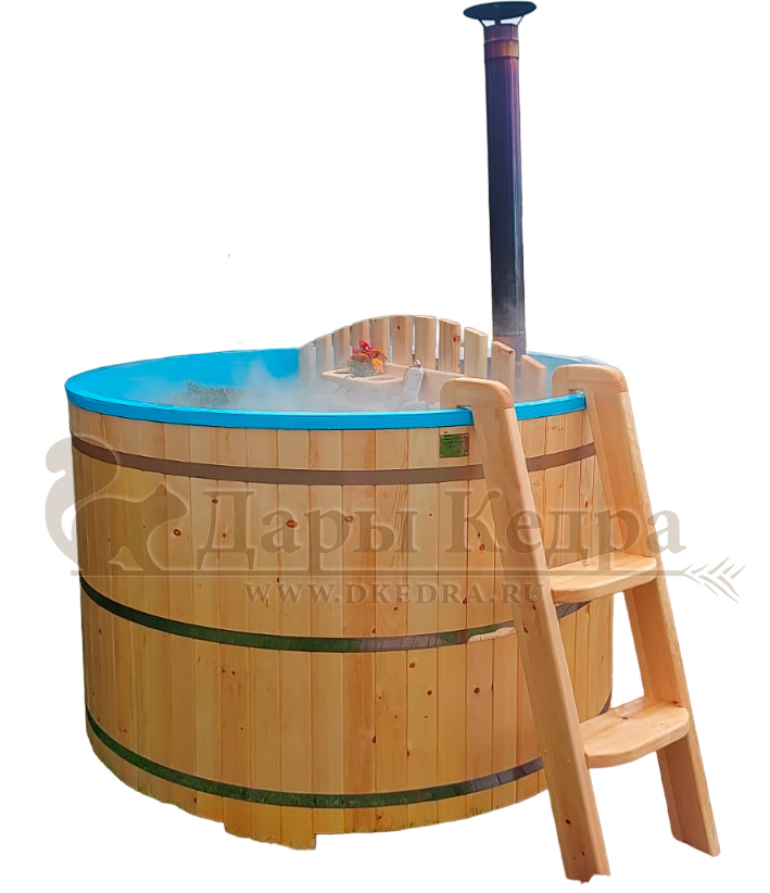 • Фурако круглая из кедра с литой термопластиковой вставкой с внешней печью Это уличная подогреваемая купель с круглой внутренней чашей из термопластика, которая имеет цельную форму вместе с сиденьями и дном. Для удобства пользования купель фурако оборудована приставной лестницей. Подогрев воды осуществляется за счет внешней печи с дымоходом. Термопластик устойчив к воздействию температур, облегчает уход за фурако и увеличивает срок ее службы. Парение на свежем воздухе – это отличный способ укрепить здоровье и поддержать организм в тонусе.