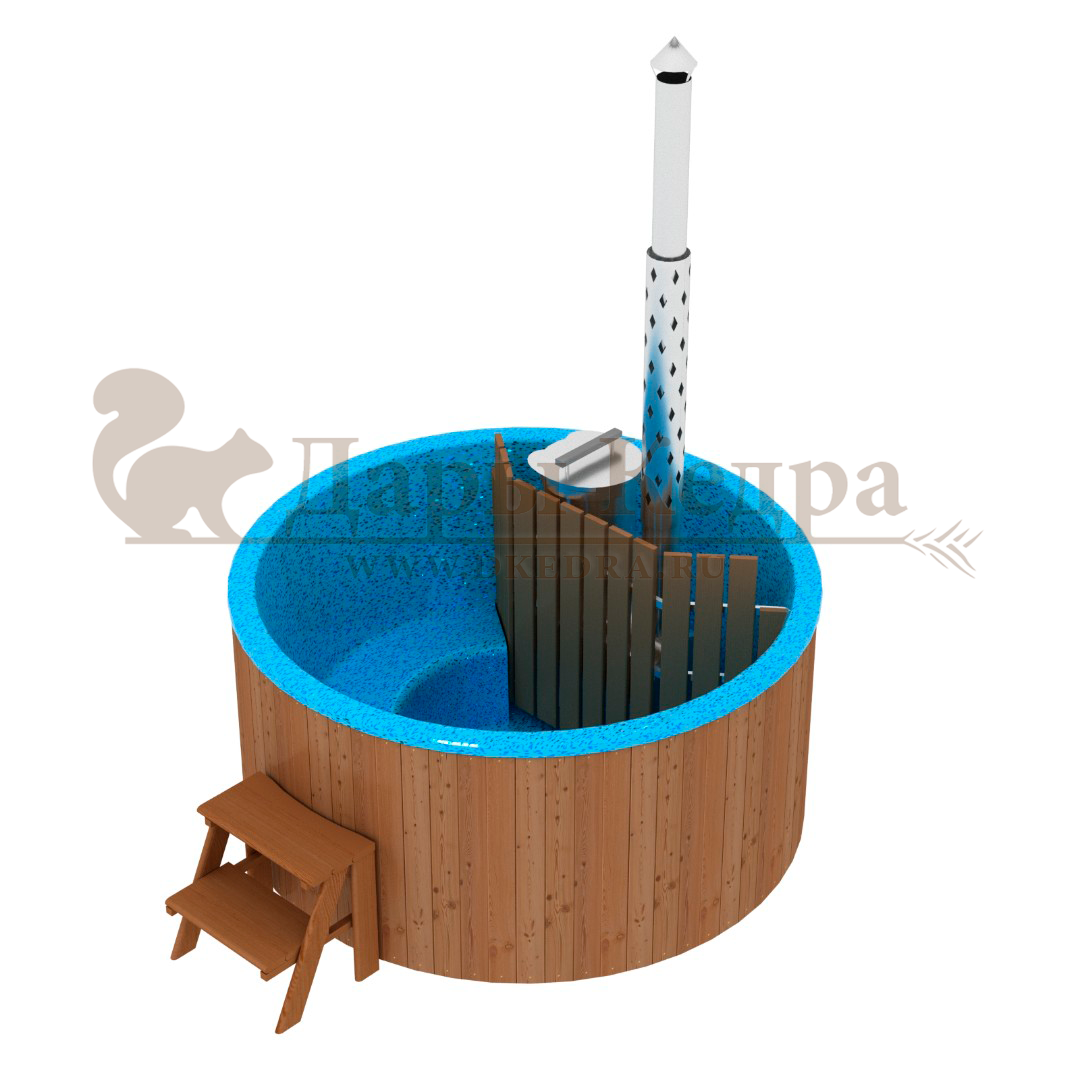 • Фурако круглая из кедра с термопластиковой вставкой со встроенной печью Это уличная подогреваемая купель с круглой внутренней чашей из термопластика. Для удобства пользования купель оборудована лавочками, приставной и внутренней лестницей. Нагрев воды происходит за счет встроенной печи, которая находится внутри купели за перегородкой. В комплектацию этой модели входит савок с длинной ручкой, который позволяет извлекать угли после эксплуатации изделия. Термопластик устойчив к воздействию температур, облегчает уход за купелью и увеличивает срок ее службы. Парение на свежем воздухе – это отличный способ укрепить здоровье и поддержать организм в тонусе.